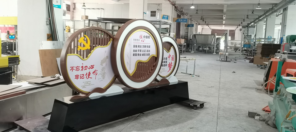 文化價(jià)值觀標(biāo)識標(biāo)牌的優(yōu)良傳統(tǒng)和黨的歷史及新中國誕生的歷程,還有我國廣大人民群眾的信仰,所以標(biāo)識牌主打色彩為紅色和金色。
